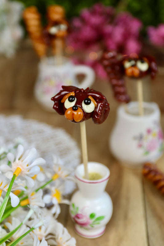 Retrouvez ici toutes nos sucettes artisanales en forme d’animaux de compagnie : chiens, chats, hamsters et bien d’autres.