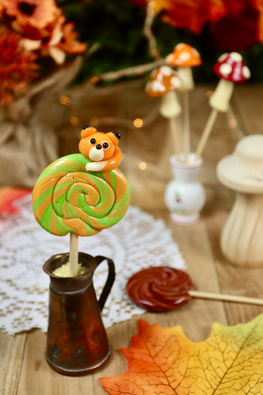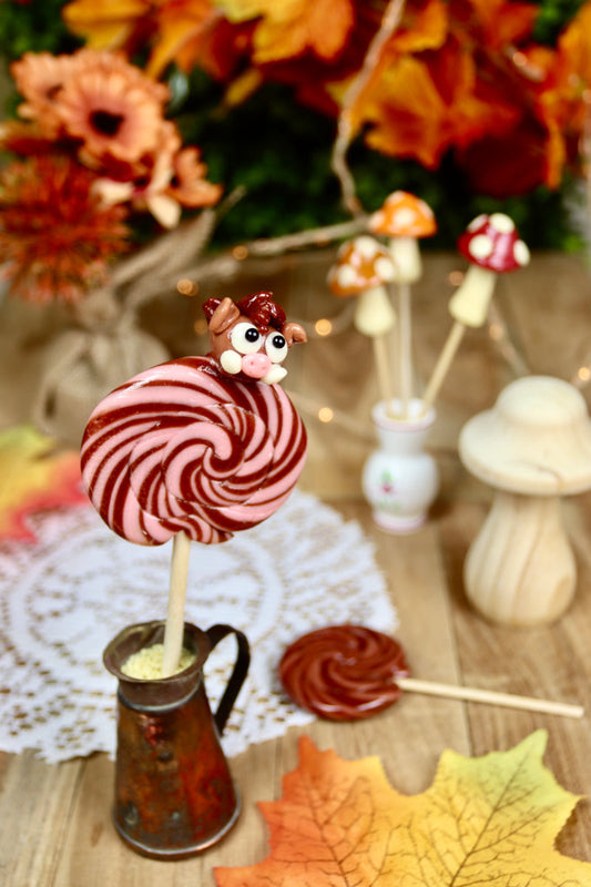 Des Sucettes dans le thème de la forêt et de l'automne. A déguster avec un chocolat chaud sous un plaid.