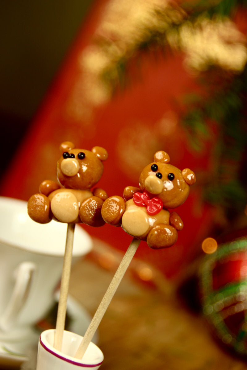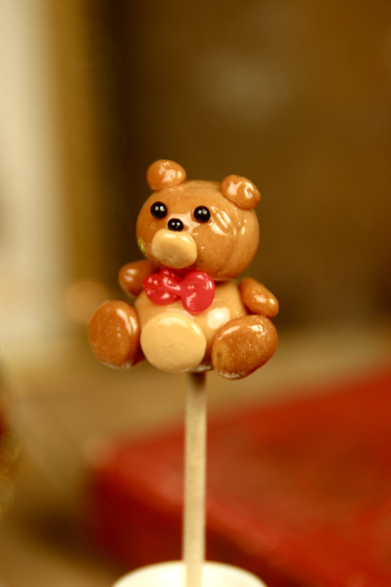 Sucette sculptée en forme de peluche avec nœud papillon, caramel beurre salé. 10g